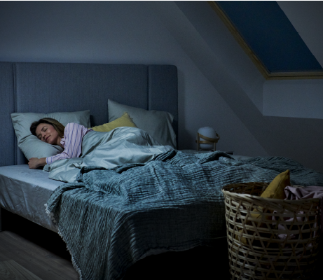 Skylight blackout shades can convert day into night, blocking even the brightest sunlight, which makes them ideal for rooms that require total room darkening, such as bedrooms. VELUX offers flat fabric or double-pleated shades in both solar and manual operation.